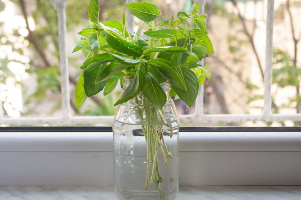 You’ll notice roots forming within a few days if the cutting is fresh and healthy. Basil loves warmth and bright light, so place it near a sunny window.