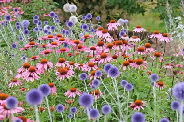 An architectural standout, Globe Thistle boasts excellent drought resistance with its unique form. Its silvery stems cleverly reduce moisture loss for this striking perennial, making it a distinguished and surprisingly low-maintenance choice for your garden.