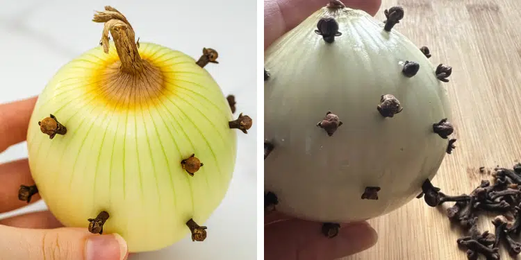 Putting cloves in an onion creates a natural air purifying “device.” The combination releases plant-based antimicrobial compounds that may help reduce airborne bacteria, unpleasant odors, and stale indoor air.