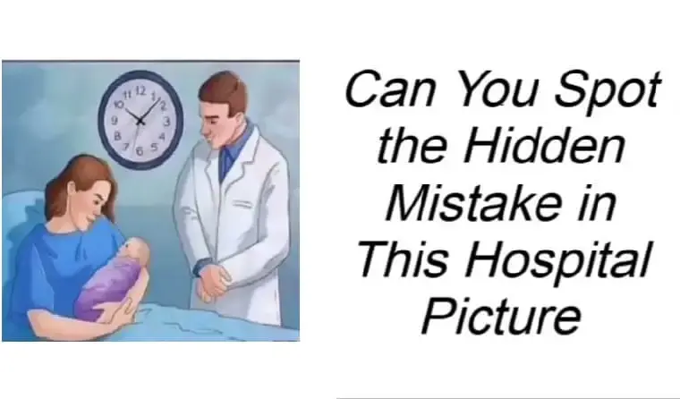 It sounds easy, but don’t be fooled. This puzzle is trickier than it appears, and many people miss the error the first time they look at the picture. The brain naturally focuses on the main subjects—the baby and the doctor—while ignoring small background details.