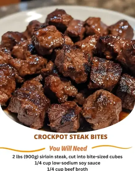 Why You’ll Love This RecipeTender & Flavorful : Slow cooking ensures the steak is incredibly tender and infused with bold flavors.Hands-Off Cooking : Just toss everything into the crockpot and let it do the work—perfect for multitasking or relaxing.Versatile : Serve as a main dish, appetizer, or even a party snack—it’s adaptable to any occasion.Budget-Friendly : Use affordable cuts of beef like sirloin or stew meat, and let the slow cooker transform them into something amazing.Meal Prep Friendly : Great for leftovers and reheats beautifully for lunches or dinners throughout the week.Ingredients You’ll NeedServes 4–6For the Steak Bites:2 lbs beef sirloin, stew meat, or chuck roast , cut into bite-sized cubes2 tbsp olive oil1 medium onion , sliced3 garlic cloves , minced1 cup beef broth (low-sodium preferred)1/2 cup Worcestershire sauce1/4 cup soy sauce2 tbsp brown sugar (optional, for a touch of sweetness)1 tsp smoked paprika1 tsp dried thymeSalt and pepper , to taste
