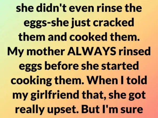 Later, when the sting had softened, he apologized. He explained that rinsing eggs wasn’t a rule—it was just something familiar, a small habit stitched into his memory. He hadn’t meant to criticize her. He hadn’t meant to compare.