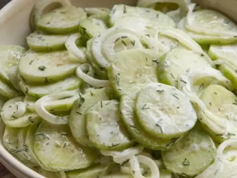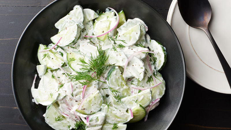 One of my favorite things about summer is hosting backyard barbecues for friends and family. It’s always so fun to fire up the grill, load on burgers and hot dogs, and serve up a buffet table of side dishes for everyone to enjoy. My barbecues generally involve the usual barbecue dishes: potato salad, grilled corn on the cob, macaroni, etc. But I recently came across an old-school recipe I had completely forgotten about that will fit in excellently at our next barbecue: creamy cucumber salad!