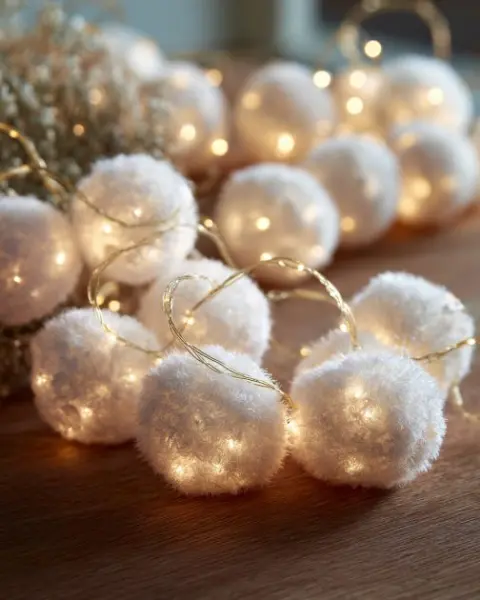 This DIY garland can be styled along a fireplace mantle, wrapped around a staircase banister, or even hung across windows to create a cozy winter ambiance. Pair it with complementary decor like pinecones, faux snow, or other winter-themed ornaments to enhance its seasonal appeal. Opt for warm white lights for a classic look, or choose colored lights for a more playful and vibrant atmosphere.