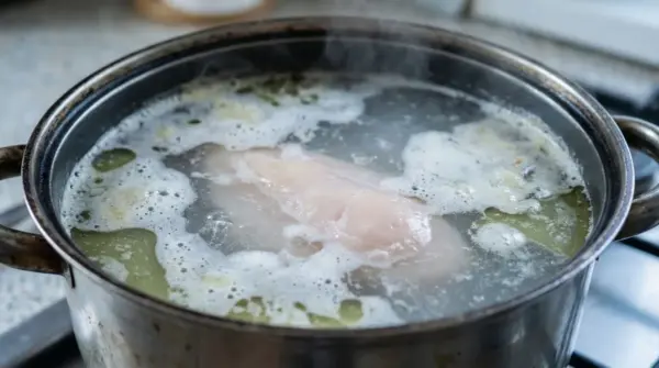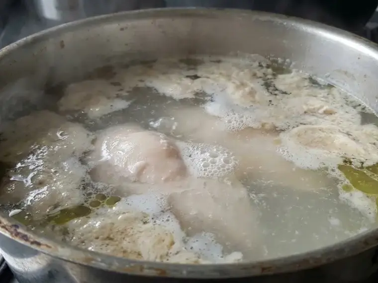 • Boiling the chicken quickly instead of gently simmering will result in significantly more foam production.