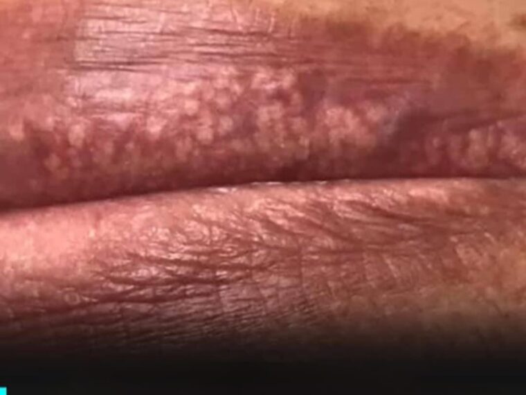 These tiny, pale or white-yellow bumps are completely normal. Known as Fordyce spots, they’re simply sebaceous (oil) glands that appear more visible on some people’s lips or genital areas.