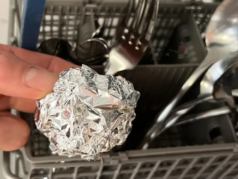 So, how does this work? Well, according to a study performed by the University of California Davis, an electrochemical reaction occurs between the tinfoil and the dishwasher detergent, removing the tarnish on your flatware and leaving it sparkling.
