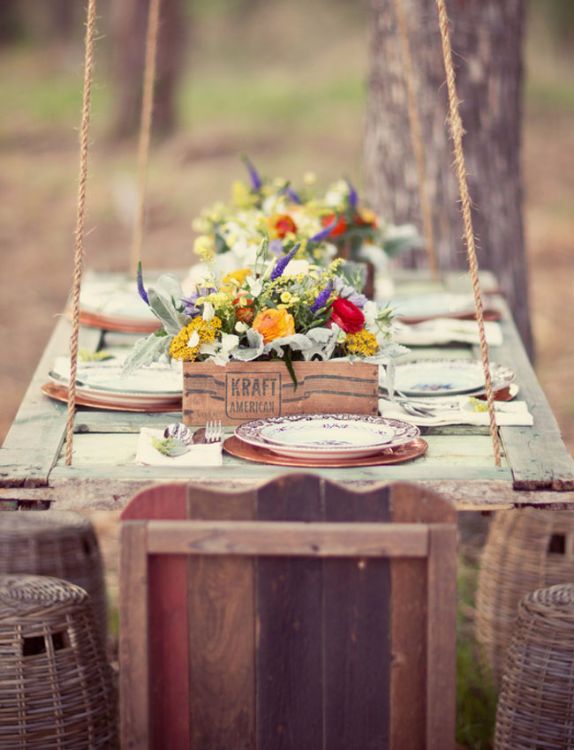 4. Outdoor barOutdoor bars are perfect for summer, and this one has more than enough space for all your drink-making equipment. It’s also a fairly easy project to tackle, even if you’re a woodworking beginner.5. Hanging table (h/t Green Wedding Shoes)This is such a cool twist on a traditional picnic table, and setting it up is easier than building one from scratch. It would work well if you just need some temporary outdoor seating, but you might like it so much that you keep it in your yard all year.