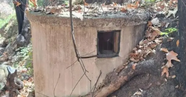It may, at first glance, look like a bunker or a misplaced utility box. But the thick walls and narrow opening also suggest something else. This was probably a former hillside water cistern — the kind of large pit used decades earlier to collect and store rainwater or spring water for the use of nearby homes, farms or even finger” livestock.